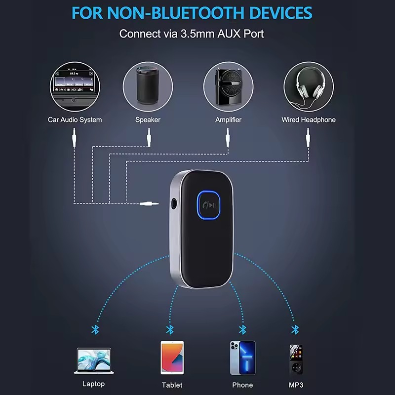 Adaptorul Bluetooth 5.0 se conecteaza rapid si simplu la orice sistem audio prin portul AUX de 3,5 mm, fiind compatibil cu toate dispozitivele dotate cu Bluetooth, inclusiv laptopuri, telefoane, tablete, casti audio si MP3 playere. Cu acest dispozitiv, fiecare moment petrecut in trafic se transforma intr-o experienta muzicala de neuitat!